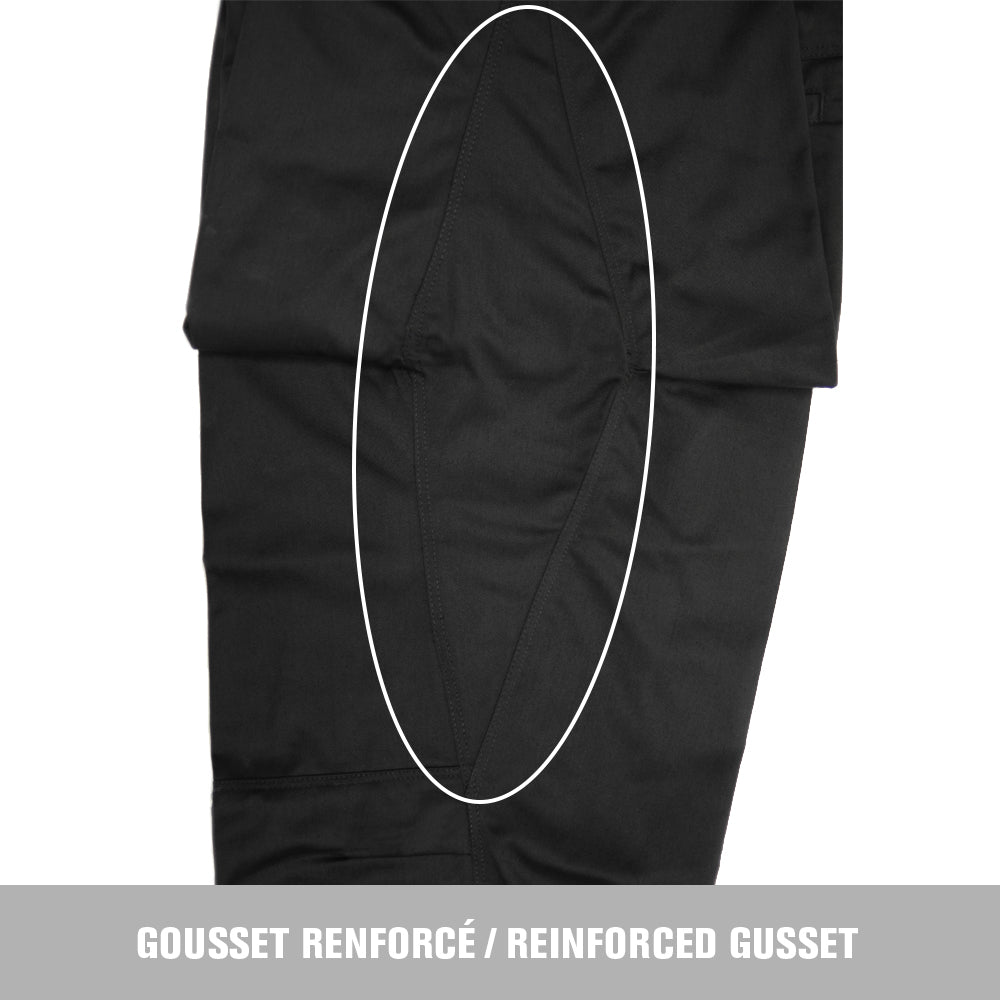 Technical cargo pants are the best ally to both outdoor and indoor workers. With their technical and innovative details, these pants will defy time thanks to the durability of their polyester and cotton blend fabric. Elastic bands at the waistline and the insertion of articulated knees will bring comfort to any kind of setting. Multiple reinforcements at the waist, at the pants loafers, at the pockets and at the gusset make
